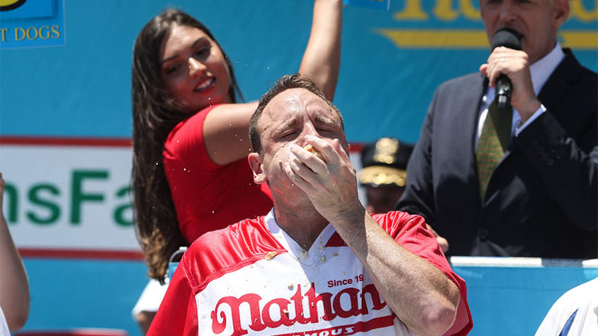 Joey Chestnut is the 2019 Nathan's Hot Dog Eating Contest champion, winning for the 12th time in his competitive eating career. Chestnut wolfed down 71 hot dogs in ten minutes to capture the title.